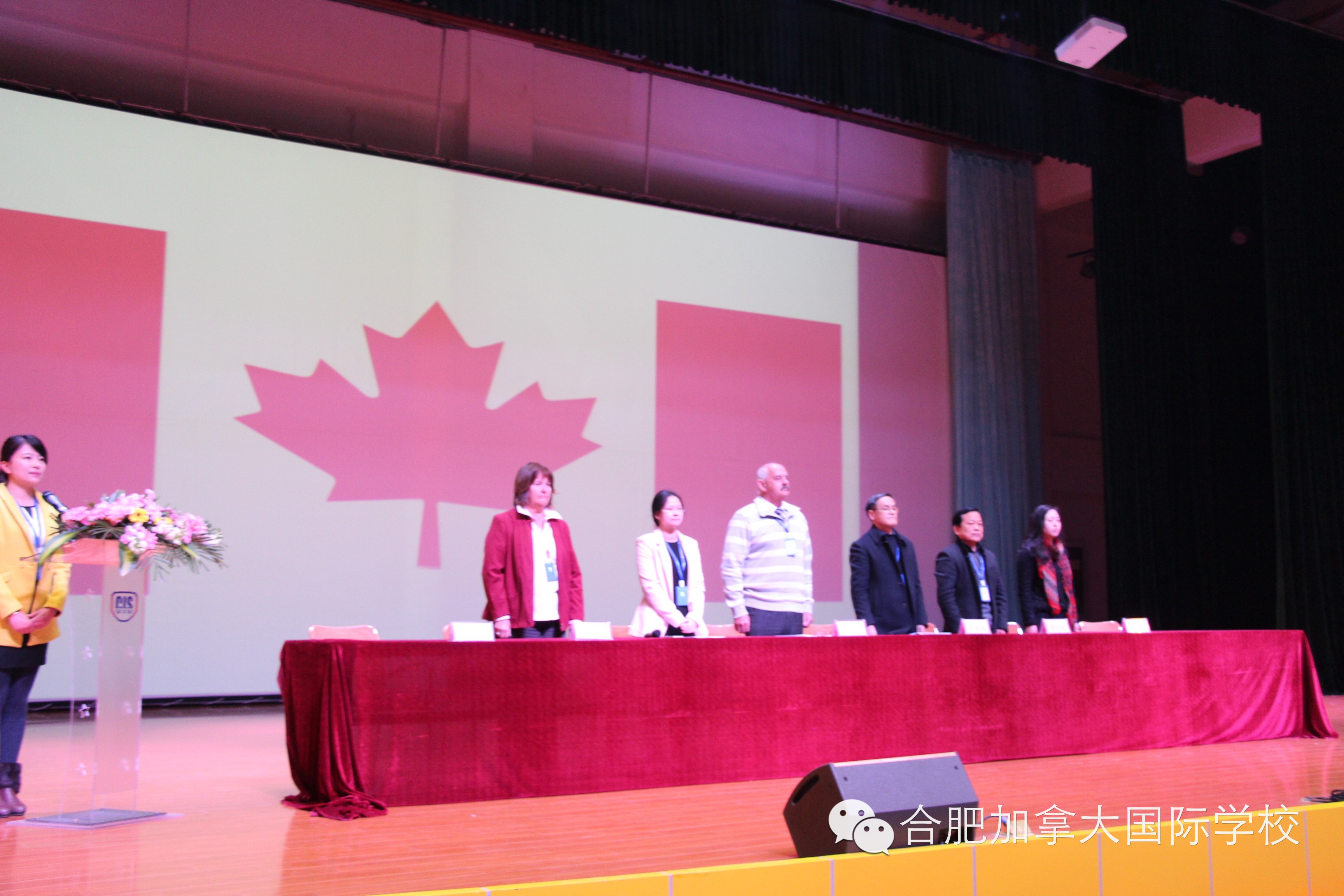 开学典礼在庄严的中华人民共和国国歌与加拿大国歌声中正式拉开帷幕。