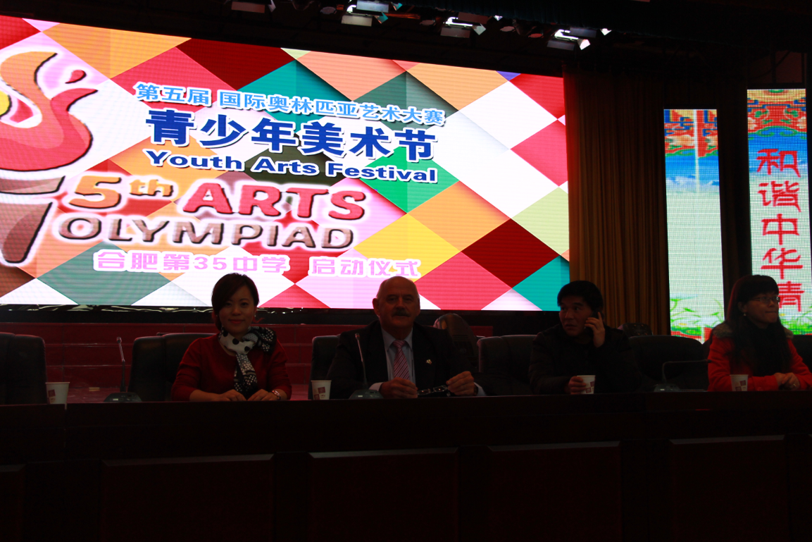 胜日寻芳董铺滨,无边光景蜀山新。3月12日,第五届国际奥林匹亚艺大赛青少年美术节启动仪式在合肥35中礼堂举行。出席活动现场的嘉宾有合肥加拿大国际学校校长 Alan Norman先生,世界奥林匹亚少儿绘画大赛组委会安徽区代表 Melody杨女士,安徽广播电视台刘恒怡处长、主持人秦春及多家媒体朋友。参加活动的还有合肥加拿大国际学校及三十五中师生代表。